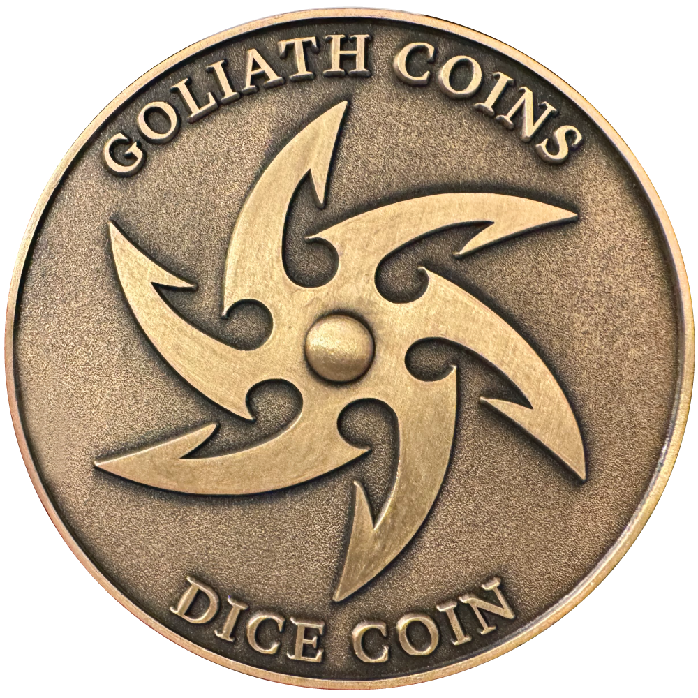 Dice Coins combine elements of a dice and a coin so you can generate random numbers by spinning the coin on a base and stopping it with your finger.  A marker line on the base indicates the result.