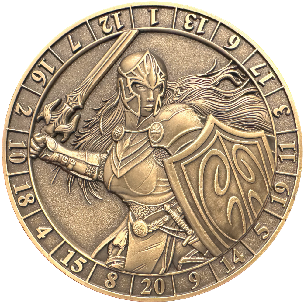 All characters and monsters are depicted on d20 Dice Coins. In the majority of RPG systems, d20's are used to determine hits, saving throws, skill checks, etc. It is the most important dice.