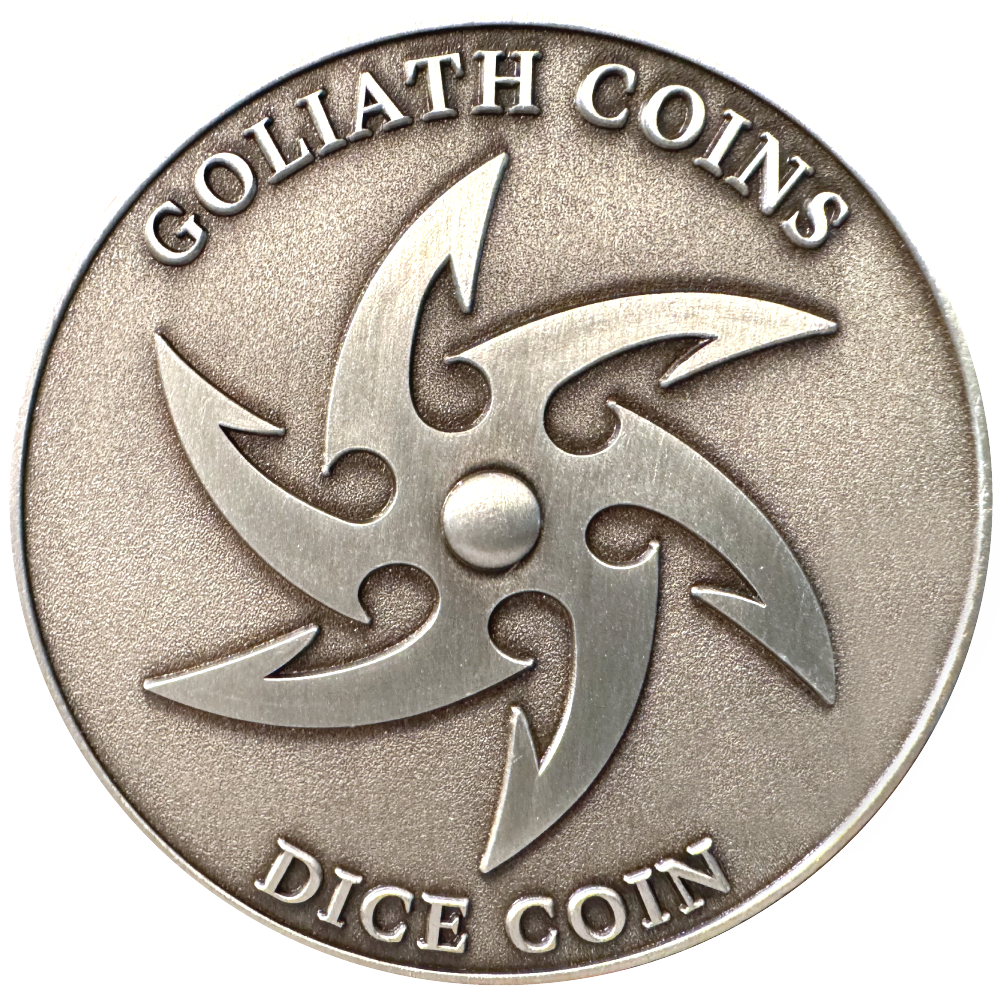 Dice Coins combine elements of a dice and a coin so you can generate random numbers by spinning the coin on a base and stopping it with your finger.  A marker line on the base indicates the result.