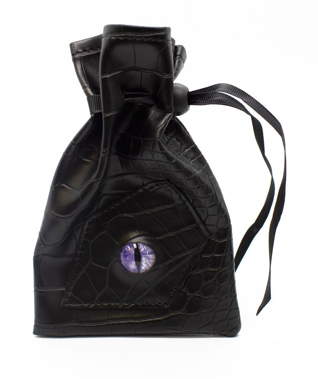 • DRAGON EYE(tm) DICE BAG: These exclusive handmade DnD dice bags are made with soft faux leather and printed with a dragon skin grain. The best feature is the stunning 3D glass-eye on the front side that gives you the feel of an actual Dragon staring you down. Each of these RPG bags are unique and no two are alike!
