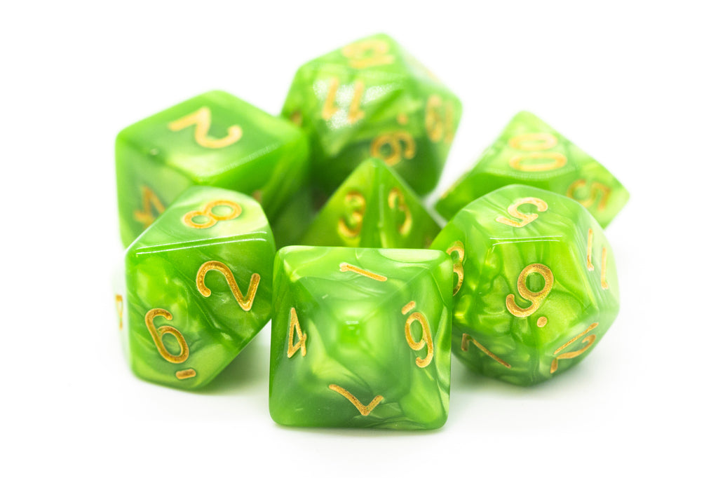 Pearl Drop Light Green With Gold - Old School 7 Piece RPG Dice Set