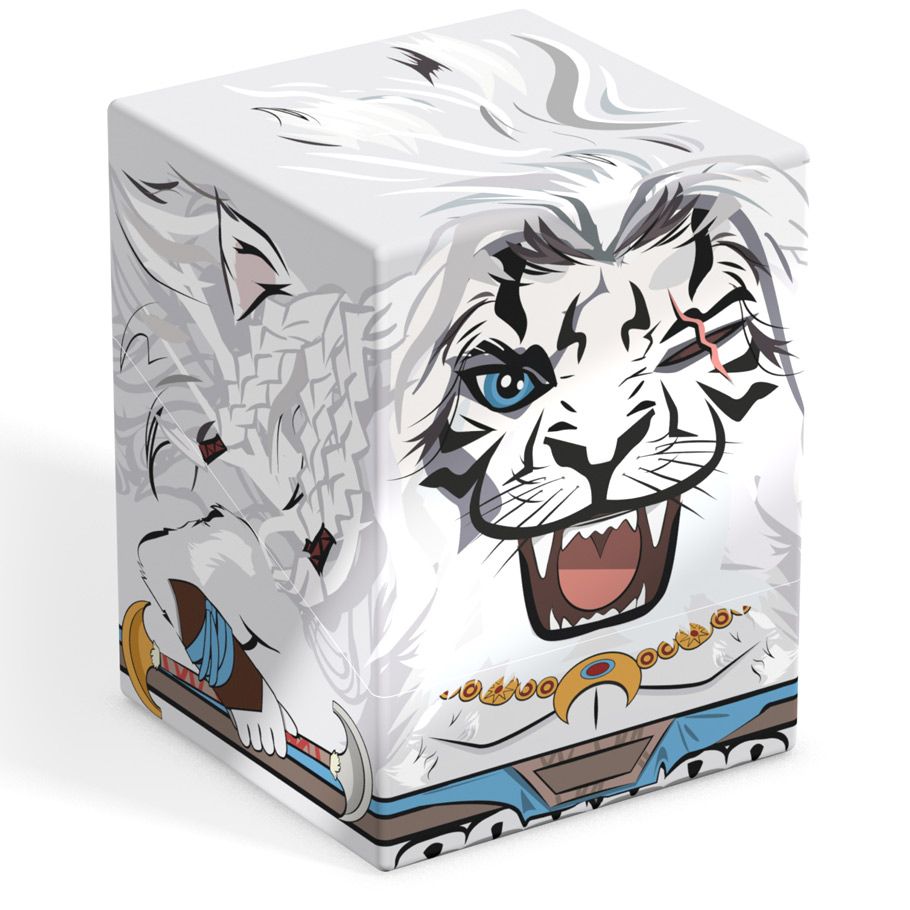 Collectible box for storing your deck, tabletop gaming accessories, and/or collectibles. The Ajani Squaroe from the Magic: The Gathering edition holds up to 100 cards in double protective sleeves if used as a deck box. Squaroes are made from 78% renewable recources.