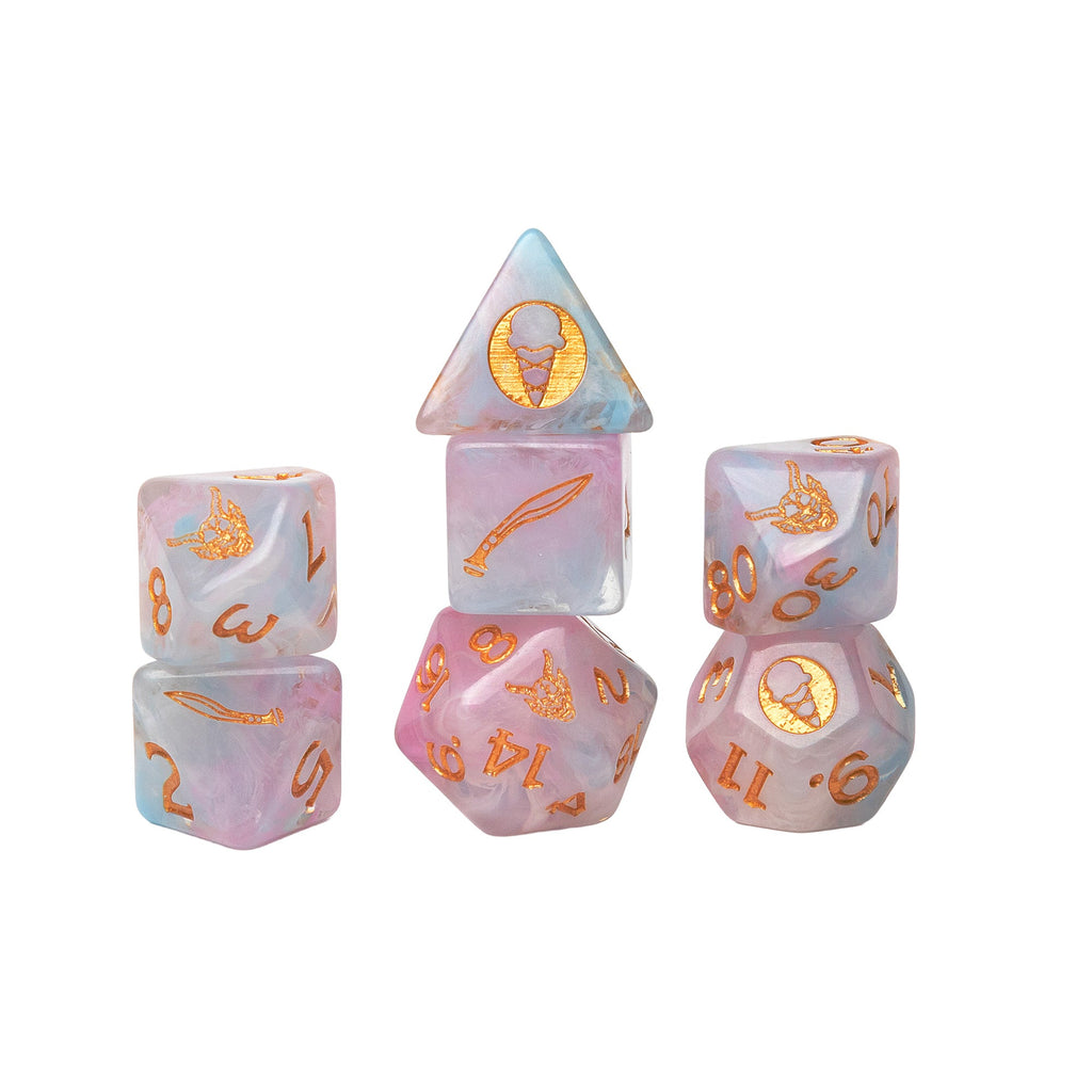 Erica’s bold personality and quick wit make for a fearless Rogue. Channel the spirit of Lady Applejack - a chaotic good half-elf rogue - with these dice and prepare to sneak behind any monster to stab them in the back with a poison-soaked kukri.