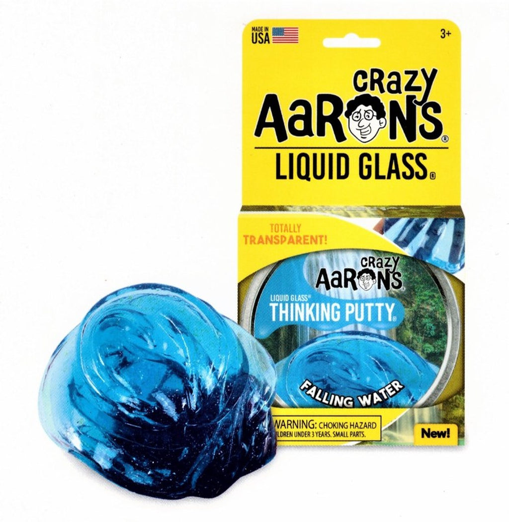 Collection: LIQUID GLASS® | Crystal Clear Blue • Made in the USA from nontoxic silicone and never dries out • Stretch it, bounce it, pop it, tear it, and sculpt it! Fun for ages 3+ • Includes 1/5 lb. (3.2 oz) of Genuine Crazy Aaron’s Thinking Putty • Thinking Putty is manufactured with the help of exceptional individuals challenged with disabilities