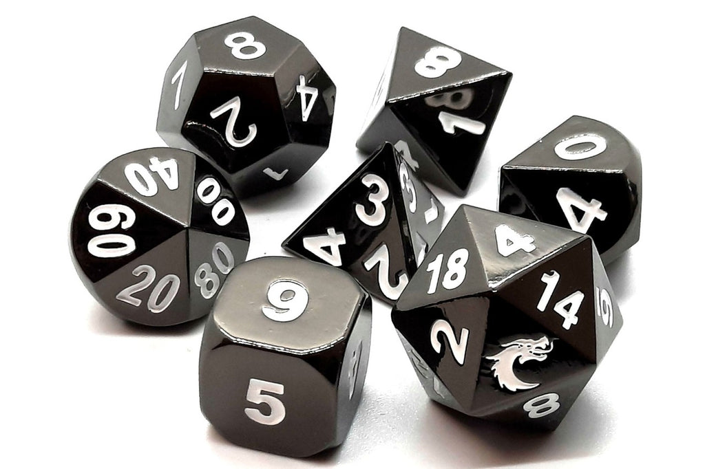 Halfling Forged: Electric Black - Old School 7 Piece RPG Metal Dice Set