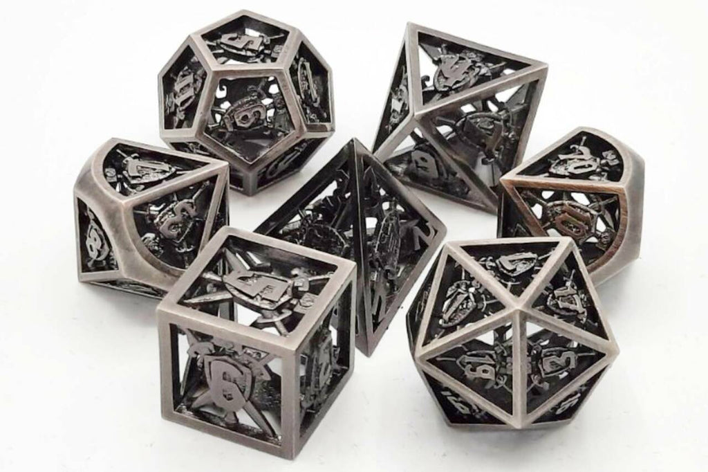 Hollow Sword & Shield: Brushed Silver - Old School 7 Piece RPG Metal Dice Set